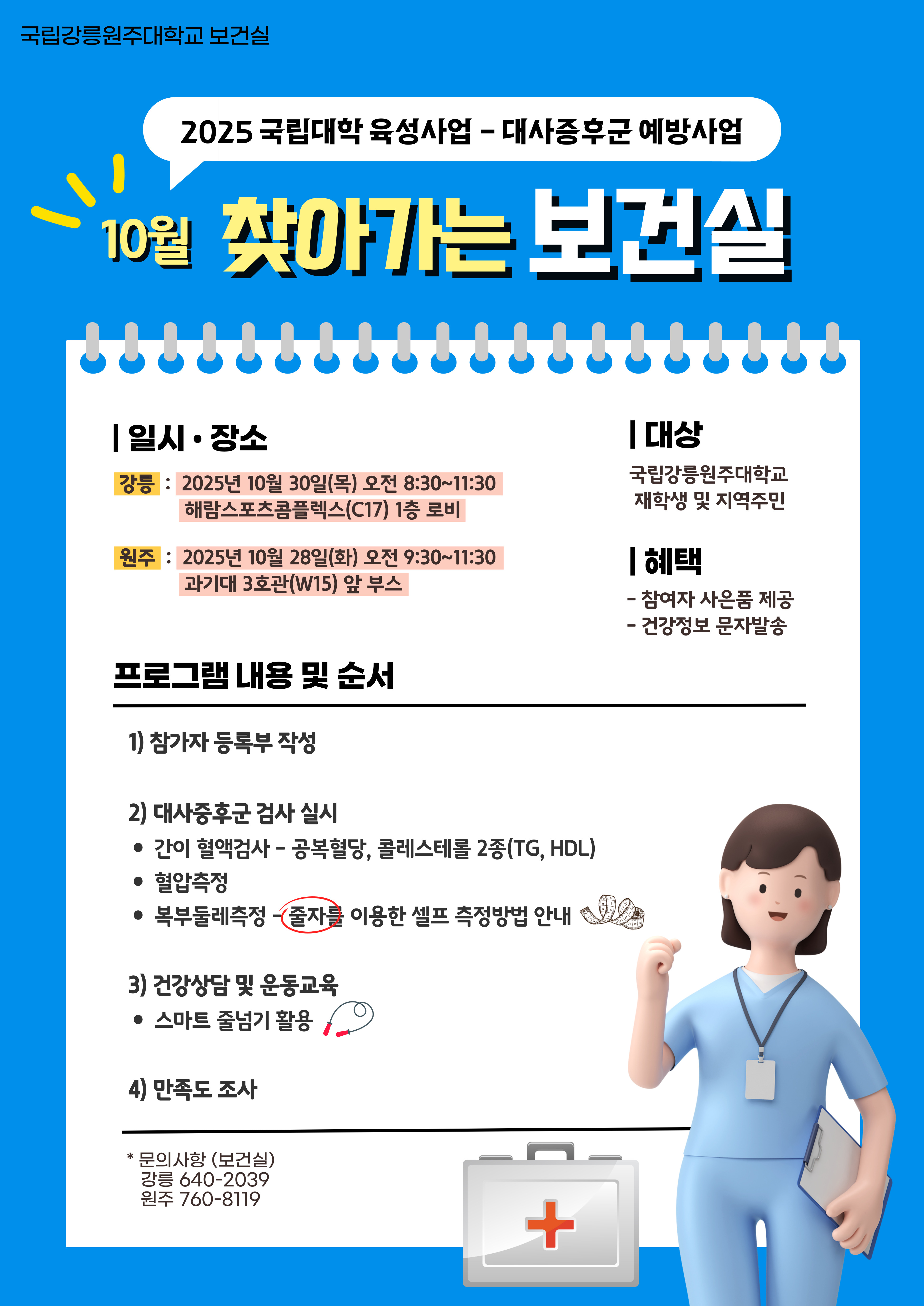 (10월) 대사증후군 예방사업-찾아가는 보건실 운영 알림