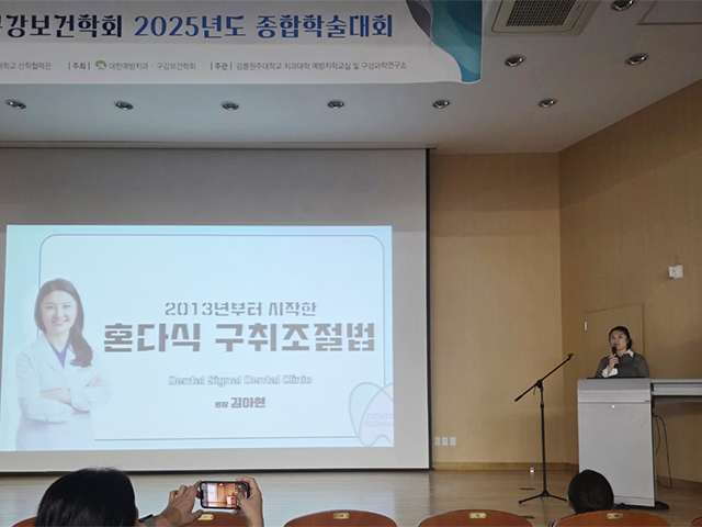 해당 세션에서는 본교 동문들이 연자로 참여하여 ▲‘보건소 중심의 노인 방문 구강건강관리사업’(최용금 동문), ▲‘2013년부터 시작한 혼다식 구취조절법’(김아현 동문), ▲‘장애인 환자의 치과주치의 되기’(황지영 동문) 등을 주제로 의미 있는 학술 발표를 진행했다.
