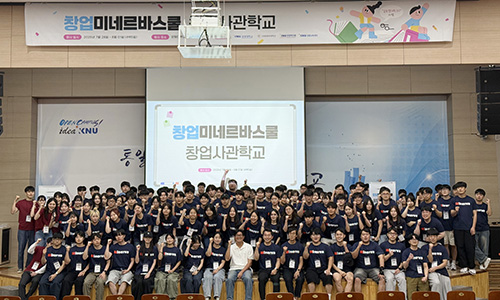 우리 대학 창업지원본부(본부장 이원상)는 강원대학교와 함께, 글로컬대학30사업의 일환으로 7월 28일(월) 강원대학교 도계캠퍼스에서 ‘창업미네르바스쿨 창업사관학교’를 공동 개최했다.